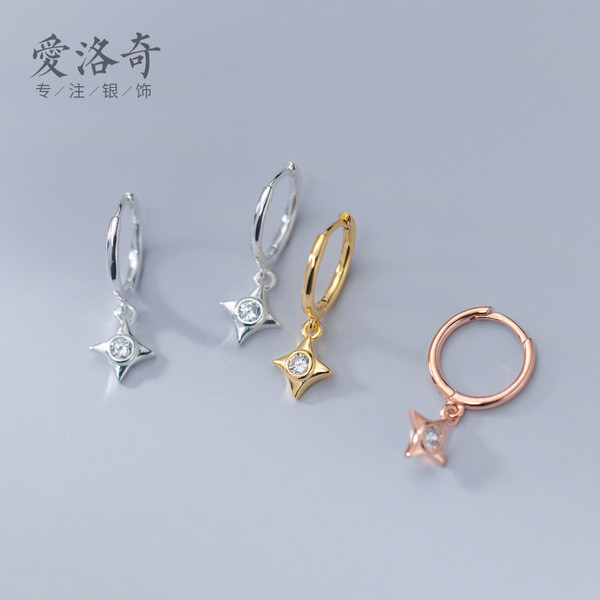 s925 sterling silver set4 asymmetric rhinestone cute stars earrings